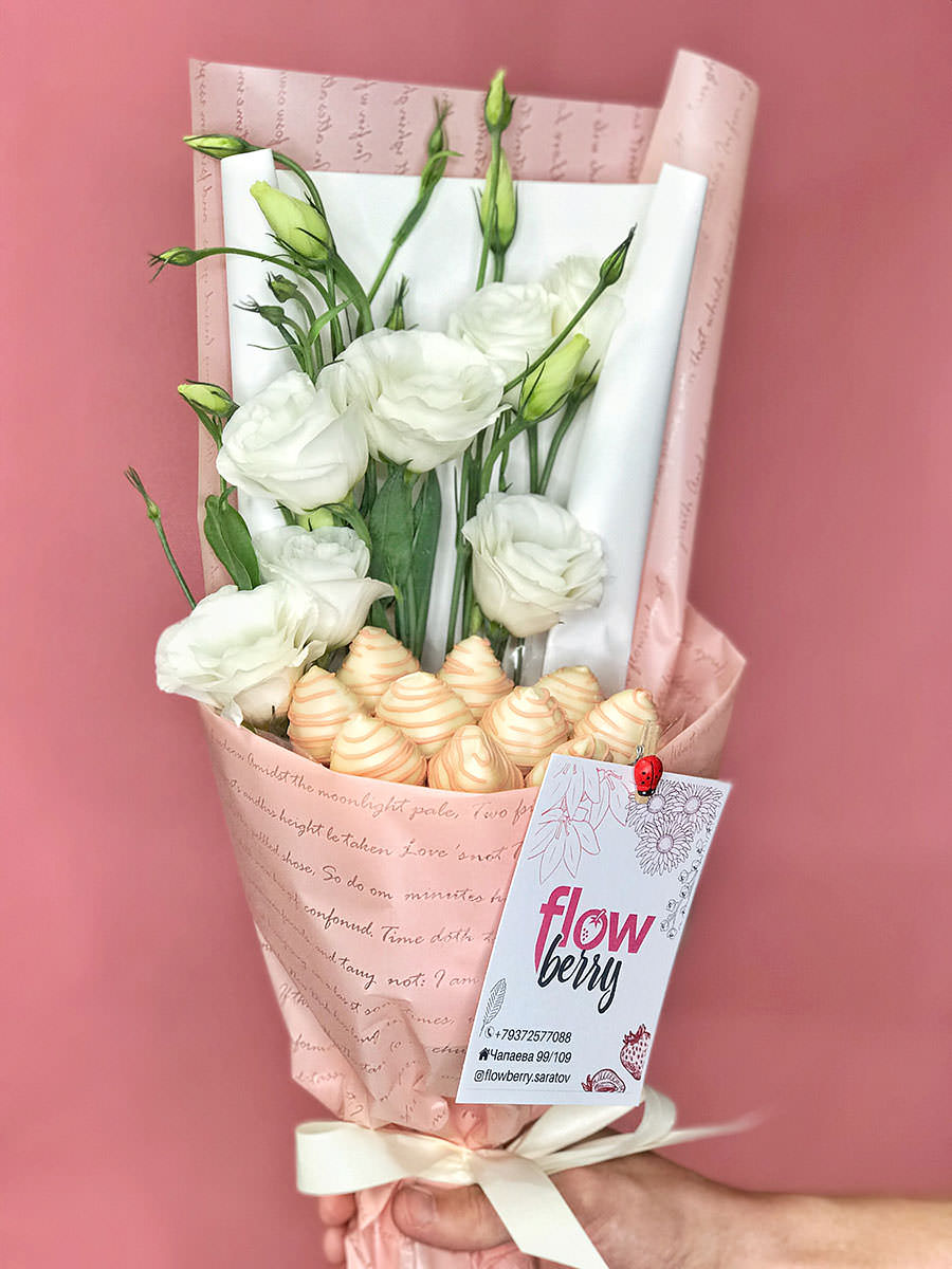 Нежная эустома с клубникой в шоколаде